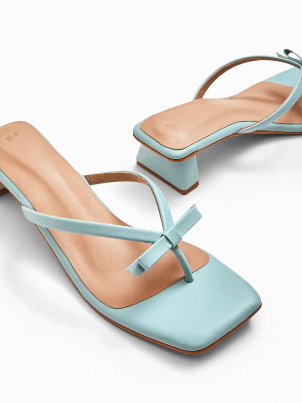 Powder Blue Bow Strap Heels, Black Bow Tie Slingback Heels