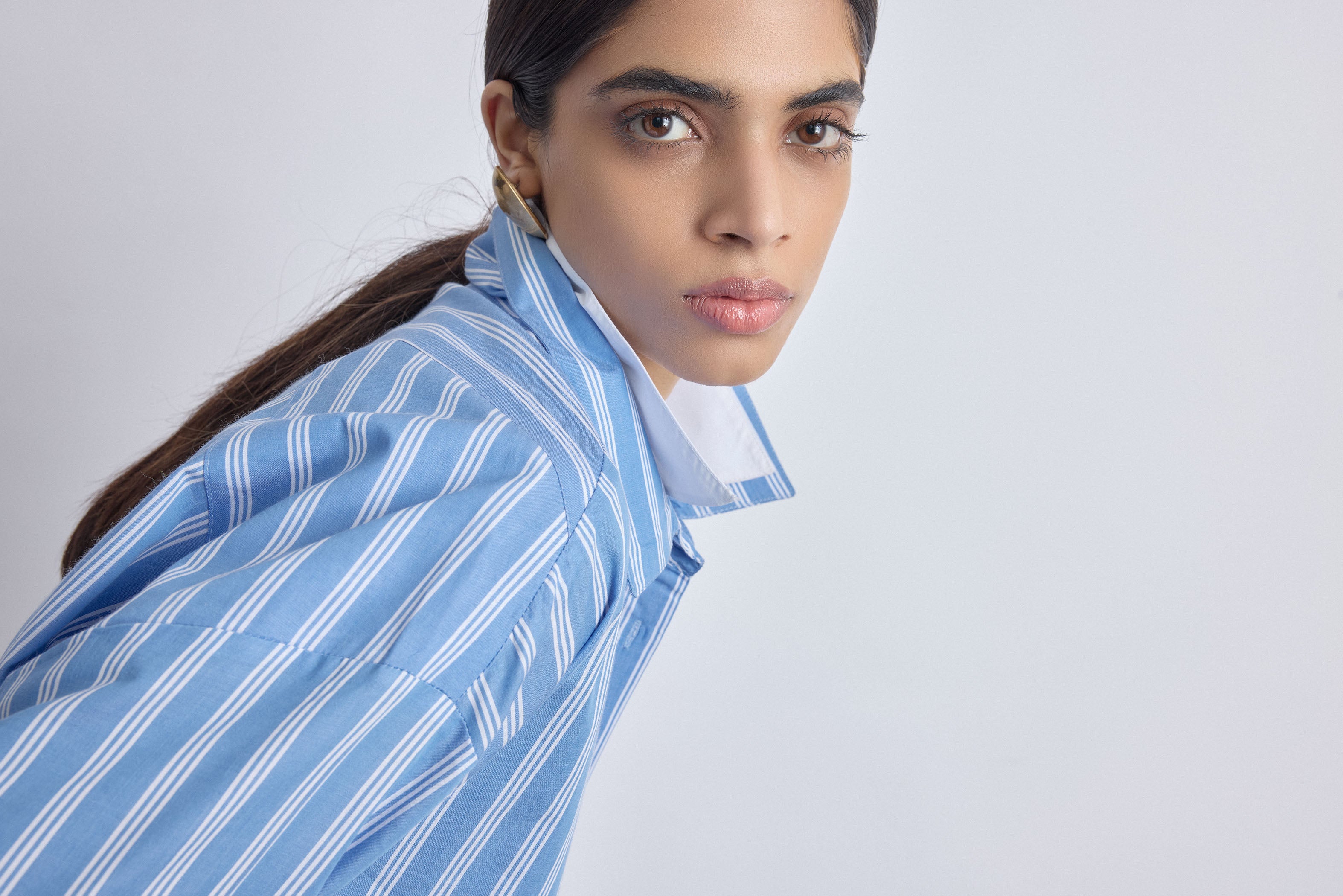 Sky Striped Double Collar Shirt